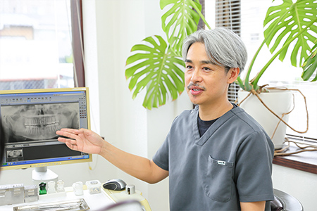見えないむし歯の進行状況を把握するために、必要に応じてレントゲン撮影を行います。適切な治療計画を立てるうえで、大切な工程のひとつです。