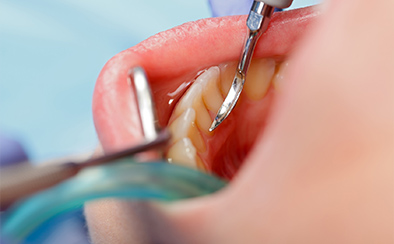 専用の器具を使い、歯の表面に付着した歯石やプラーク(歯垢)を取り除く処置です。歯ぐきの炎症を抑えることができ、歯周病の進行を防ぐ基本的な治療として行われます。