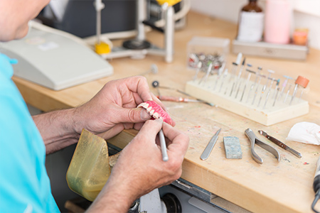 当院では、専属の歯科技工所(同法人:瀬戸ファミリア歯科医院2階)と密に連携し、精密な入れ歯をオーダーメイドで作製しています。患者さま一人ひとりのお口に合わせたオーダーメイドにより、見た目や噛み心地はもちろん、装着時の違和感の軽減にもつながります。また、専属の歯科技工所で調整や修理が行えるため、スムーズな対応が可能です。フィット感や仕上がりにこだわりたいかたは、ぜひ一度ご相談ください。