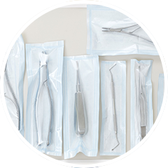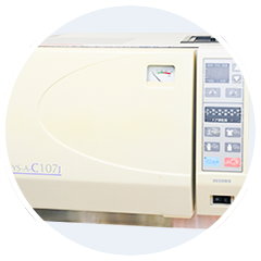 治療に使用する器具は高圧蒸気滅菌器で滅菌し、滅菌パックや使い捨て製品を活用することで感染予防に努めています。