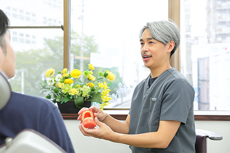 検査結果をもとに、現在のお口の状態や考えられる治療方針や期間、費用の目安、使用する装置の種類などを詳しくご説明します。患者さまのご希望やライフスタイルも配慮し、無理のない治療計画をご提案させていただき、内容にご納得いただいたうえで、治療を開始しますのでご安心ください。